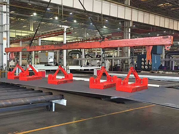 The fully automatic permanent magnet lifter requires no manual operation of the handle; it relies on the lifting and lowering control of the electric crane’s hook to attract and lift corresponding round steel bars and steel plates. It requires no electricity, is safe to use, and is widely used for lifting and handling steel materials, as well as for the installation and handling of flat mechanical parts and various molds. It is suitable for lifting and handling steel plates at room temperature in industries such as shipbuilding, construction machinery, and automobiles. It is mainly used for connecting with the workpiece during lifting, and for moving iron plates, blocks, and cylindrical magnetic materials. It is easy to operate, safe and reliable, and has a compact and lightweight design. It is widely used in factories, docks, warehouses, and the transportation industry, improving working conditions and increasing labor efficiency in loading and unloading operations.